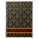 Very detailed gold damask pattern on a black background. Lower decorative bar added for your own custom text to your custom notebook. Place your name on it or a favourite saying.