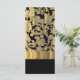 PERSONALIZE this stylish elegant sophisticated girly feminine gold vintage damask floral flower pattern & gold ribbon on a black background , with your own text, name or monogram, initial .