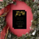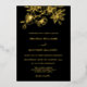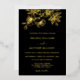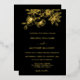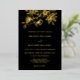 This elegant wedding invitation features gold line art floral cherry blossoms on a black background.