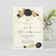 Elegant and simple black and gold flowers on a geometric frame on white and gold marble background bridal shower invitation