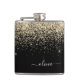 Gold Black Girly Glitter Sparkle Monogram Name Hip Flask