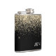 Gold Black Girly Glitter Sparkle Monogram Name Hip Flask