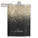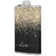 Gold Black Glitter Custom Monogram Name Hip Flask