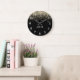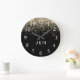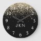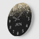 Gold Black Glitter Monogram Girly Initials Large Clock
