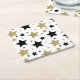 Gold Black Glitzy Stars Square Paper Coaster