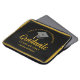 These sophisticated gold and black graduation laptop sleeve features elegant cursive script under a grad cap. Personalise this commemorative Class of 2024 graduate gift with chic serif typography for a senior. Modern high school or college graduation gift.
