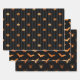 Gold Black Halloween Spider Pumpkin & Bats Pattern Wrapping Paper Sheets Set of 3.