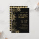 Gold & Black Houndstooth & Snowflakes Holiday Glam Invitation