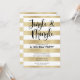 Classy gold and white stripe Jingle & Mingle party invitation with pretty script lettering. Perfect for your holiday party!