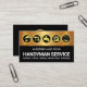 A faux gold layer features five gold handyman-remodeling icons which represent some of the work you may offer e.g. the drill-measuring tape can stand for renovation, the brush for painting, faucet for plumbing, washing machine for electrical repairs and the spades-fork for landscaping-gardening. Just below this is a gold line with a black layer that holds the business name and the job title "HANDYMAN SERVICE". Towards the base is a list of services that you can change.