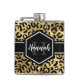 Chic gold and black leopard print flask with a custom name and monogram template. A cute and trendy safari animal print pattern background topped with your own bit of personalisation.