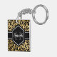 Chic gold and black leopard print keychain with a custom name and monogram template. A cute and trendy safari animal print pattern background topped with your own bit of personalisation.