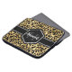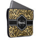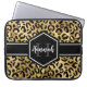 Chic gold and black leopard print laptop sleeve with a custom name and monogram template. A cute and trendy safari animal print pattern background topped with your own bit of personalisation.