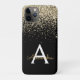 Gold and Black Luxury Glam Chic Sparkle and Faux Glitter Girly Modern Monogram First Name and Initial Smart Phone Case. Please contact the designer for matching items