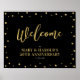 This stylish welcome sign features gold textured confetti and modern typography. Perfect welcome sign for a gold & black wedding anniversary celebration party.
