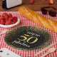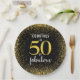 “50 and fabulous.” Be proud, rejoice and usher in 50 with style! This chic, playful, personalised, sparkly gold faux glitter confetti on a black background paper plate will help make her birthday a party to remember. Your choice of 2 sizes: 7” or 9”. But why choose when you can order both? Matching and coordinating invitations, envelopes, labels, paper napkins, mugs and other items are also available. A great gift for a good friend!