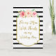 Classic black and white stripes patter, gold, and pink watercolor vintage floral thank you card for the mother of the bride on your wedding day.