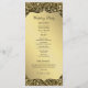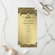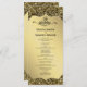 This wedding program design combines sophistication with timeless elegance. The front side presents the couple’s names highlighted within an ornate golden damask frame, set against a deep black background. On the reverse side, the complete wedding program is displayed on a shimmering gold panel bordered with matching damask flourishes. All text areas are fully editable, making this card perfect for formal, elegant, and memorable wedding celebrations.