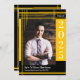 Gold Black School Colour Graduation Photo Plaid Invitation
