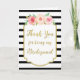 Gold Black Stripe Pink Floral Thank You Bridesmaid Card