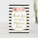 Matron of honour thank you card in classic black and white stripes pattern with gold details and vintage pink and peach rustic watercolor flowers, the perfect way to show your appreciation to your bridal party. Available in matching invitations and a wide selection of other wedding products.
