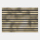 A trio of gift wrap, each with a different design on it but all in gold and black. The first sheet has alternating horizontal stripes in medium and thin lines across it; the second has a vertical thick stripe and horizontal / vertical thin stripes across it that form a cross square pattern and the third has thick and thin vertical lines across which are medium sized confetti polka dot circles. The background colour may be changed to any of your choice.