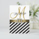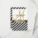 Gold, Black and White Monogram Wedding RSVP Card with a diagonal black and white stripes pattern and a PRINTED gold satin ribbon and a PRINTED square diamond brooch on a square flat card design. Layout Design by Elke Clarke ©2012. Graphics licensed. Customise with your monogram names and wedding reply card text using the prompts or select "customise it" for more editing options. Brides love the embellished invitations with jewels and ribbons until they get to the post office and realise that the invitations will cost so much more to send to their guests. These invitations and wedding packet accessories have the photo of the satin ribbon and the diamond brooch PRINTED on the flat card. You end up with the elegant effect without the extra cost and work of assembling your invitations. Please contact luxuryweddinginvitations@gmail.com for other colours or help with your design or any matching items you require.