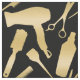 Fun gold-tone on black patterned fabric with the silhouette cutout shapes of various tools of the trade, stylist tools and implements such as hair dryer, scissors, comb, brush, application brush and spray bottle. Add flair to your daily small business work life with this fun hairdresser design to create your salon items like capes, masks, or other custom items. You can even change the background color by choosing "customize it" and changing the "printed background color".