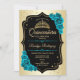 Gold Black Teal Elegant Quinceanera Invitation