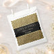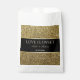 Elegant, modern, glitter gold and black wedding thank you favour bag with simple calligraphy script.