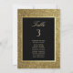 This elegant seating card showcases a modern, luxurious design with chic black and gold glitter. Featuring simple calligraphy script, it includes a guest list and table number, seamlessly blending sophistication with practicality for your wedding.