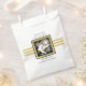 The design features a pair of ice skates over a snowflake crest with faux gold glitter, black, and white background. This elegant winter sports design serves as modern and unique favour bags with personalised text for ice skating themed party, Christmas, and more!