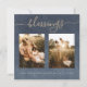 Gold Blessings Dark Blue Christmas Photo Holiday Card