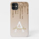 Gold Bling Ombre Sparkle and Faux Dripping Glitter Girly Modern Monogram First Name and Initial Smart Phone Case. Please contact the designer for matching items