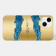 Faux gold bacground with blue agate, marble stone print as background Personalise and add your name. The name is written with a modern hand lettered style script.