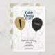 Gold Blue & Black Balloons Boys 1st Birthday Party Invitation