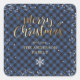 Gold Blue Buffalo Plaid Snowflake Christmas Square Sticker
