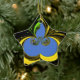 A quality product. Very nicely printed which wraps around the edge with a plain back. Not at all to heavy to fall off that tree branch. The printing seems crisp and robust enough to last for many a Christmas.