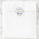 Custom name class of 2024 graduation stickers with gold and blue confetti pattern.