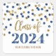 Custom name class of 2024 graduation stickers with gold and blue confetti pattern with modern lettered style text.