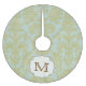 Gold Blue Damask Lace Monogram Initial Tree Skirt