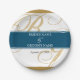 Gold Blue Elegant Script Monogram Wedding Paper Plate