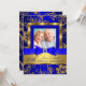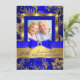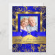 Gold Blue Floral Photo 50th Wedding Anniversary Invitation