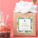 The size is perfect and the design has a softness with the beautiful flowers around the edges. The black lettering on the white background is sharp. It stands out beautifully. I love the Mixture of font styles as it catches the eye.