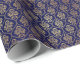 Luxury style gold and blue background. Seamless pattern texture with damask motif. Vintage illustration