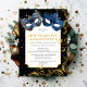Get ready to ring in the New Year in style with a glamourous masquerade ball! This elegant invitation features royal blue masks, sparkling gold swirls, and shining stars to set the tone for a memorable celebration. Send out this invitation to your friends and loved ones to join you in welcoming the new year with a glamourous party.