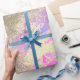 Gold Blue Pink Ombre Marble Shiny Metallic Strokes Wrapping Paper