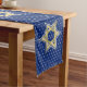 Gold Blue Star of David Widthwise White Extra Long Table Runner