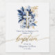 Modern, elegant Baptism thank you bottle labels. The label features typography script ''Baptism'' in gold handwritten lettering, a blue, navy and gold floral arrangement with a matching blue and gold cross, all set against a pristine white background. Personalise further with a name and date.
