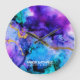 Gold Blue Watercolor Large Clock